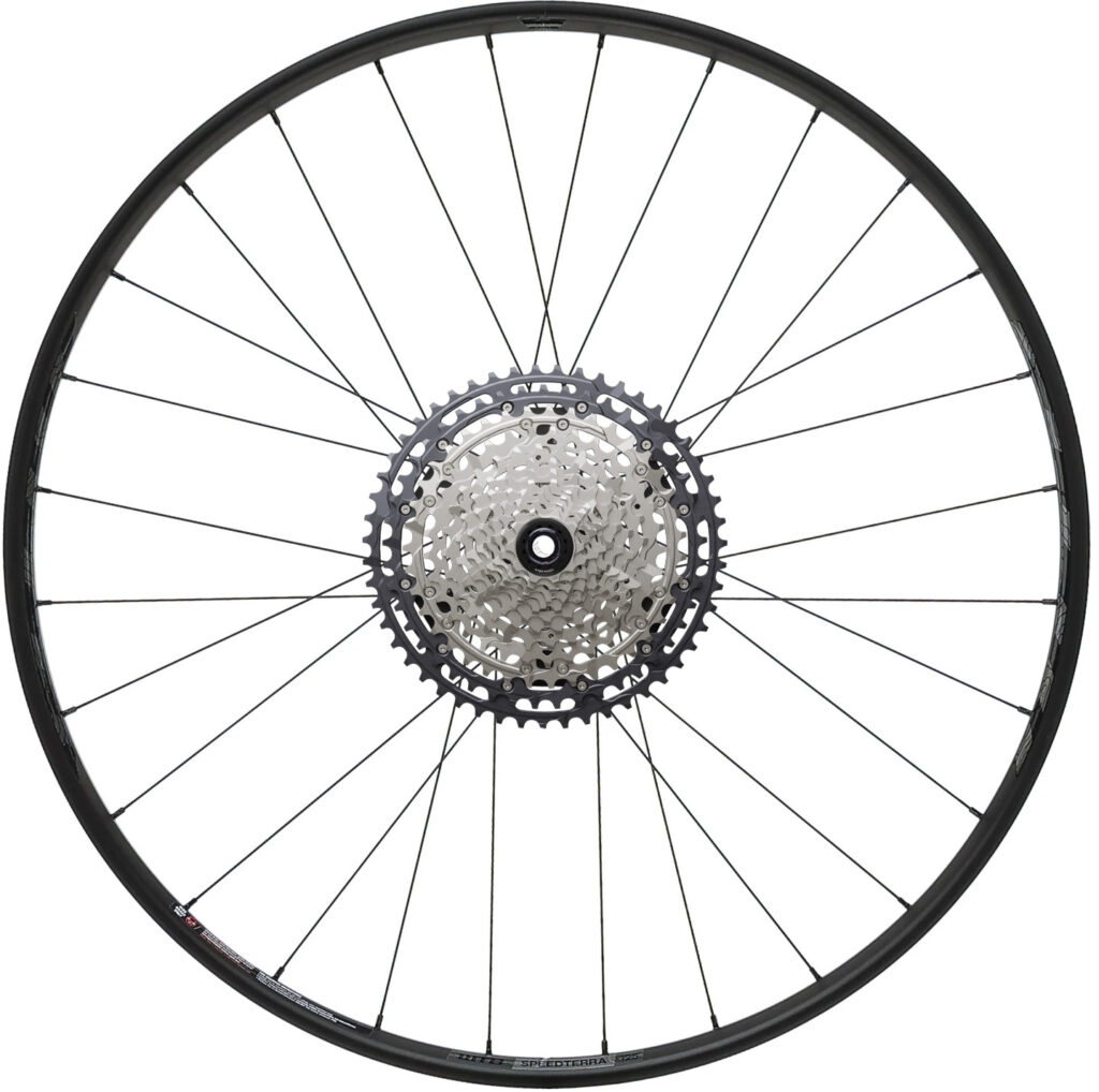 En 42-tandad singelklinga tillsammans med en 12 växlad kassett ger ett imponerande växelspann på 510%. Med denna setup kan du vara säker på att alltid ha rätt växel för både snabba och krävande grusvägar.